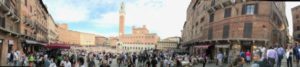Niall Ferguson je zgodovinar, ki s svojim raziskovanjem, različnih elementov družbenega življenja in opisovanjem le teh na zanimiv, bralcu prijazen način, približa razvoj družbe tudi širši publiki. V svoji knjigi Trg in stolp se loti dveh mehanizmov obvladovanja človeških množic, ki sta se prepletala skozi zgodovino. To je moč vladajočih takoimenovanih hierarhij, ki svojo avtoriteto nosijo v sami zasnovi, kjer je moč centralizirana in ponavadi delegirana iz vrha – primere lahko najdemo v kraljevski vladavini, vojski, podjetjih in še kje. Na drugi strani pa obstajajo strukture omrežij znotraj katerih je moč bolj porazdeljena, vendar velikokrat nič manjša in čeprav obstajajo znotraj omrežij določene točke, ki so bolj pomembne od ostalih, je omrežje prav zaradi svoje strukture lahko bolj trdoživo in velikokrat celo uspešnejše. Lepo alegorijo na razmerje med obema strukturama je našel v arhitekturni dvojici trga in stolpa v Sienni, kjer stolp (hierarhija) meče svojo senco na trg (omrežje) pod njim, kjer se odvija družbeno življenje in na ta način nakazuje prevlado, ki pa ni vedno enaka in vsemogoča.